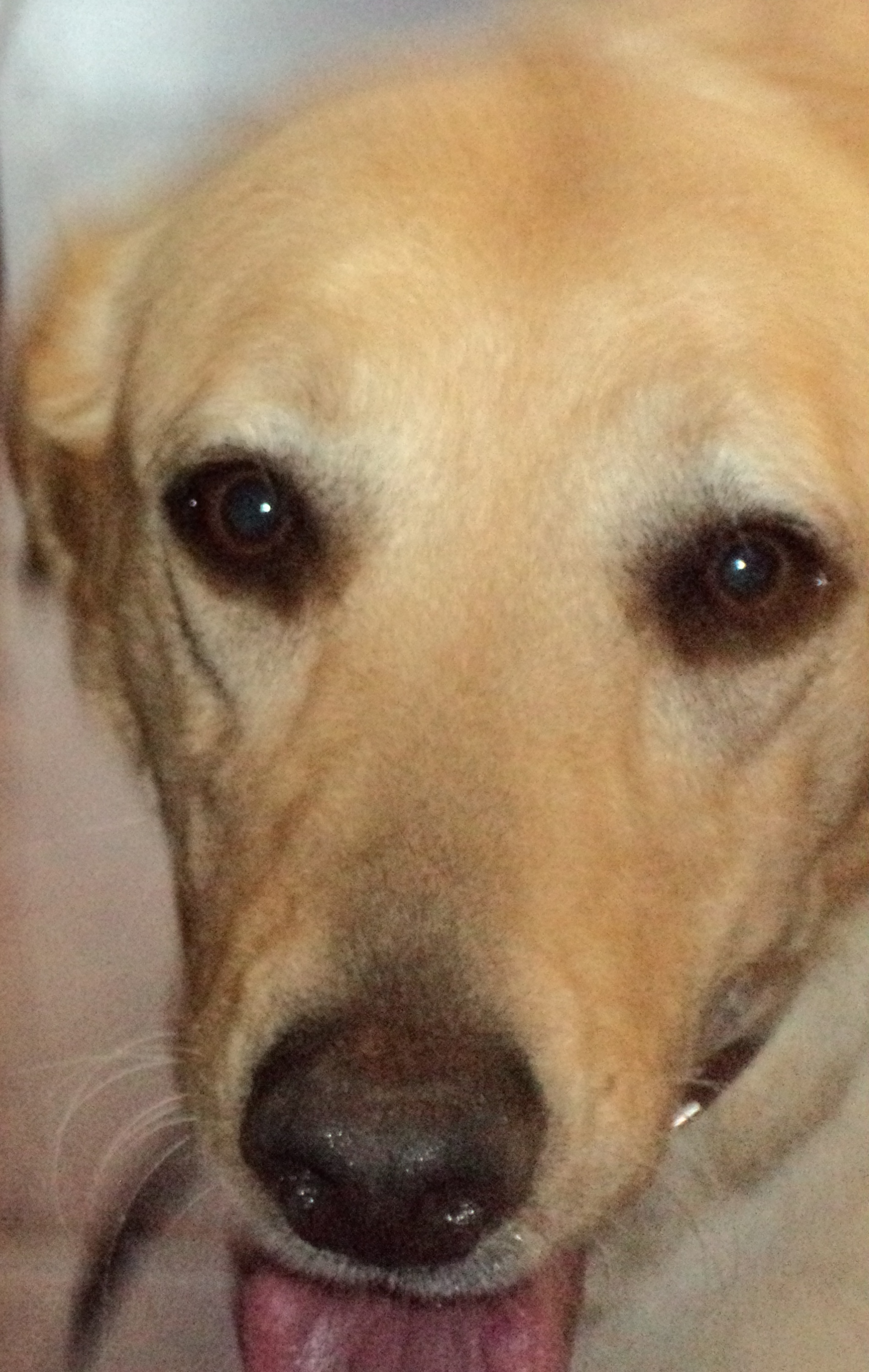 Brandi, A Labrador Retriever who is almost three. Her family surrendered her to