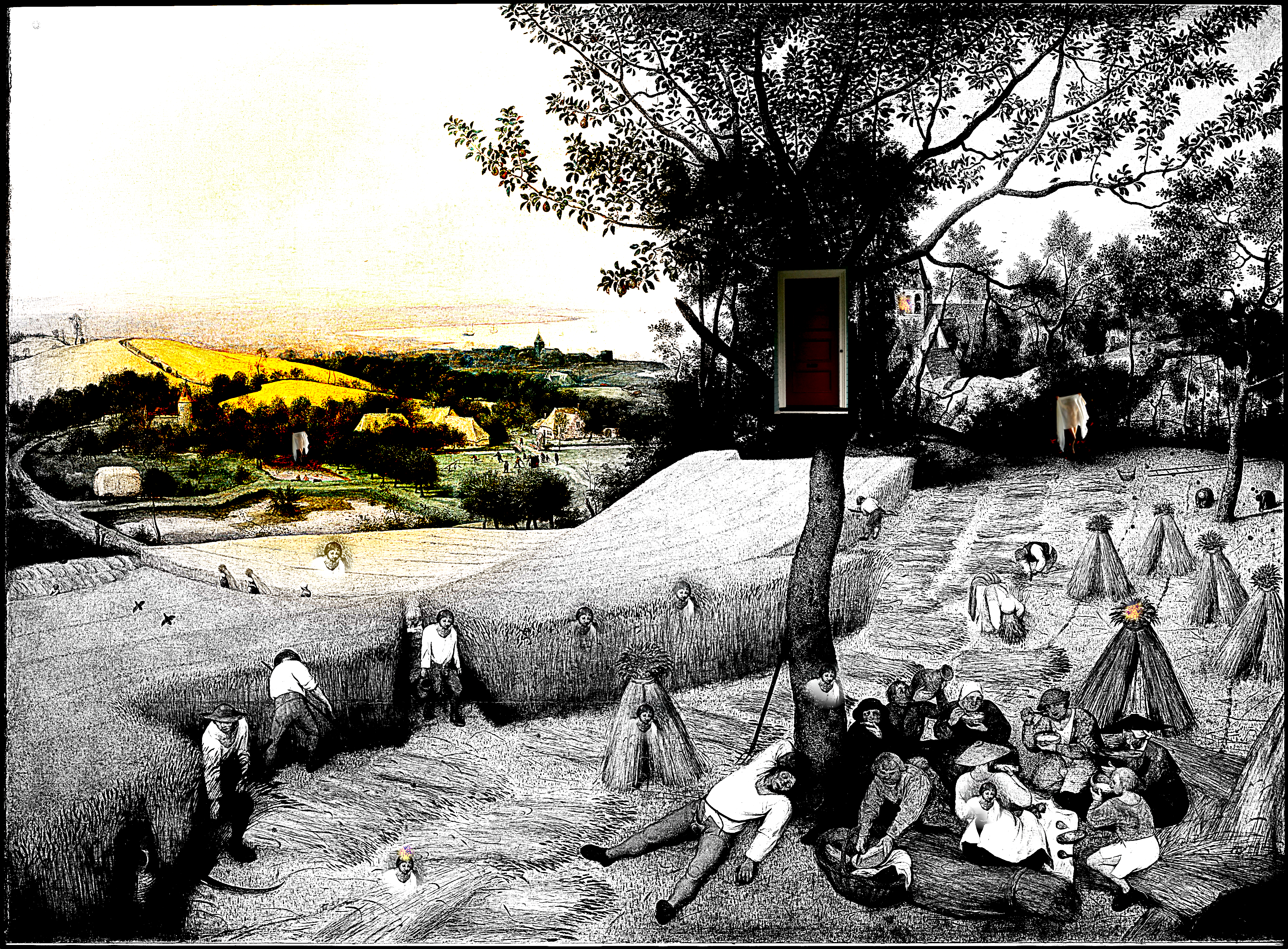 Since the Met has lifted copyright restrictions I have taken massive liberties with the original painting to make my own statement – to use Bruegel's work to create a portal.