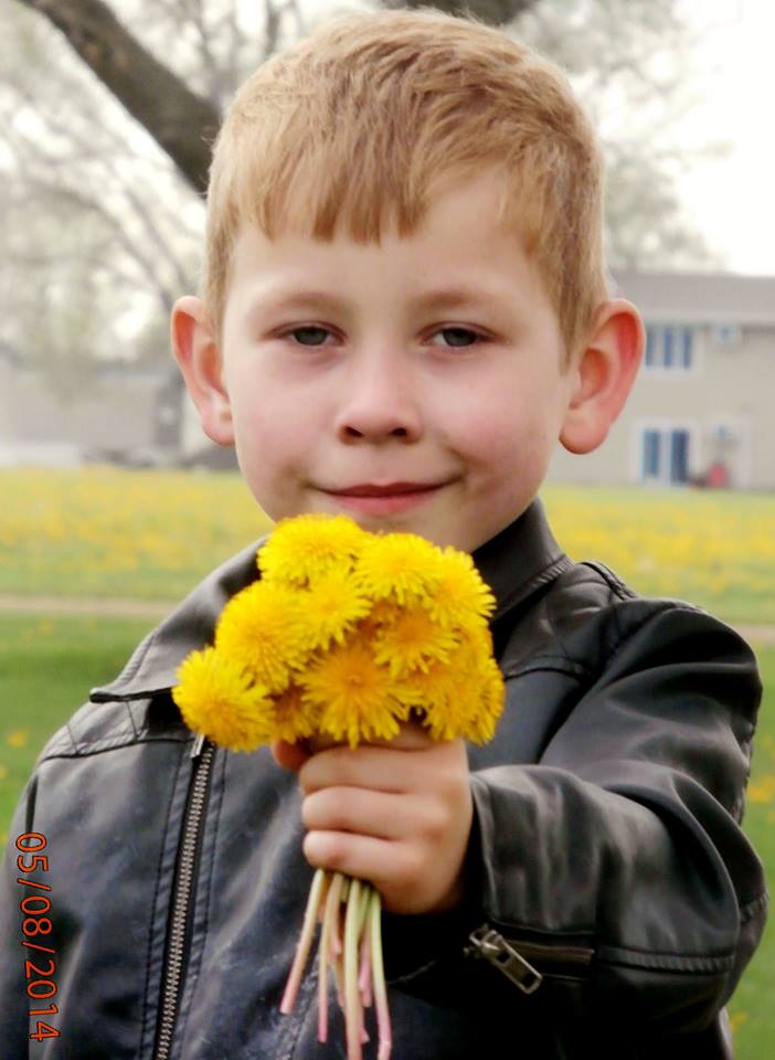 Many thoughts, images and feelings come to mind. This photograph of my grandson, taken at age 5, lifts my spirit. His bouquet of dandelions was one of the most priceless gifts I've ever received. An offering simple, yet so loving.