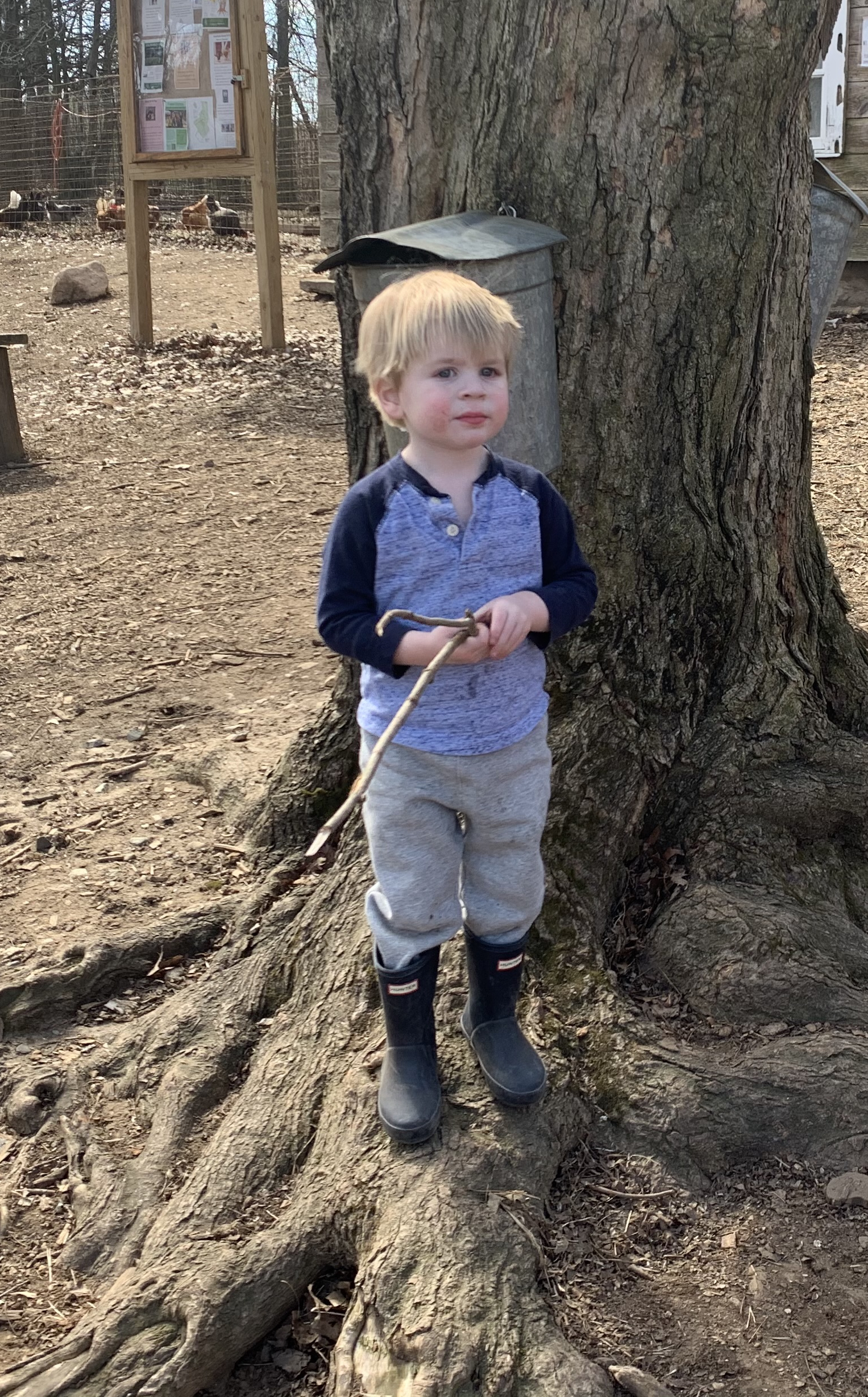 In the middle of a spring day a four-year old was shaking a tiny tree as hard as he could.