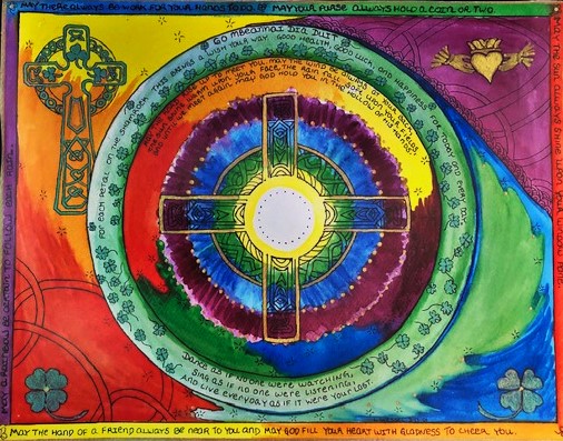 Well for Saint Patrick’s Day I did raise a couple of Guinness (room temperature ~ if it doesn’t taste good at room temp then it cannot be a good ale or stout ~ just saying). I also reflected on all the strong souls that braved to emigrate to America during Ireland’s Great Famine only to suffer the hatred and discrimination so many have suffered in this country of opportunity. Thank you for sharing part of your family history with us. It enriches all of us. I especially like the description of the Celtic cross. The four elements working together from all directions. It is a beautiful symbol of love. As is your mandala. And to end with a blessing by John O’ Donohue. A wonderful reflection for these stressful times.